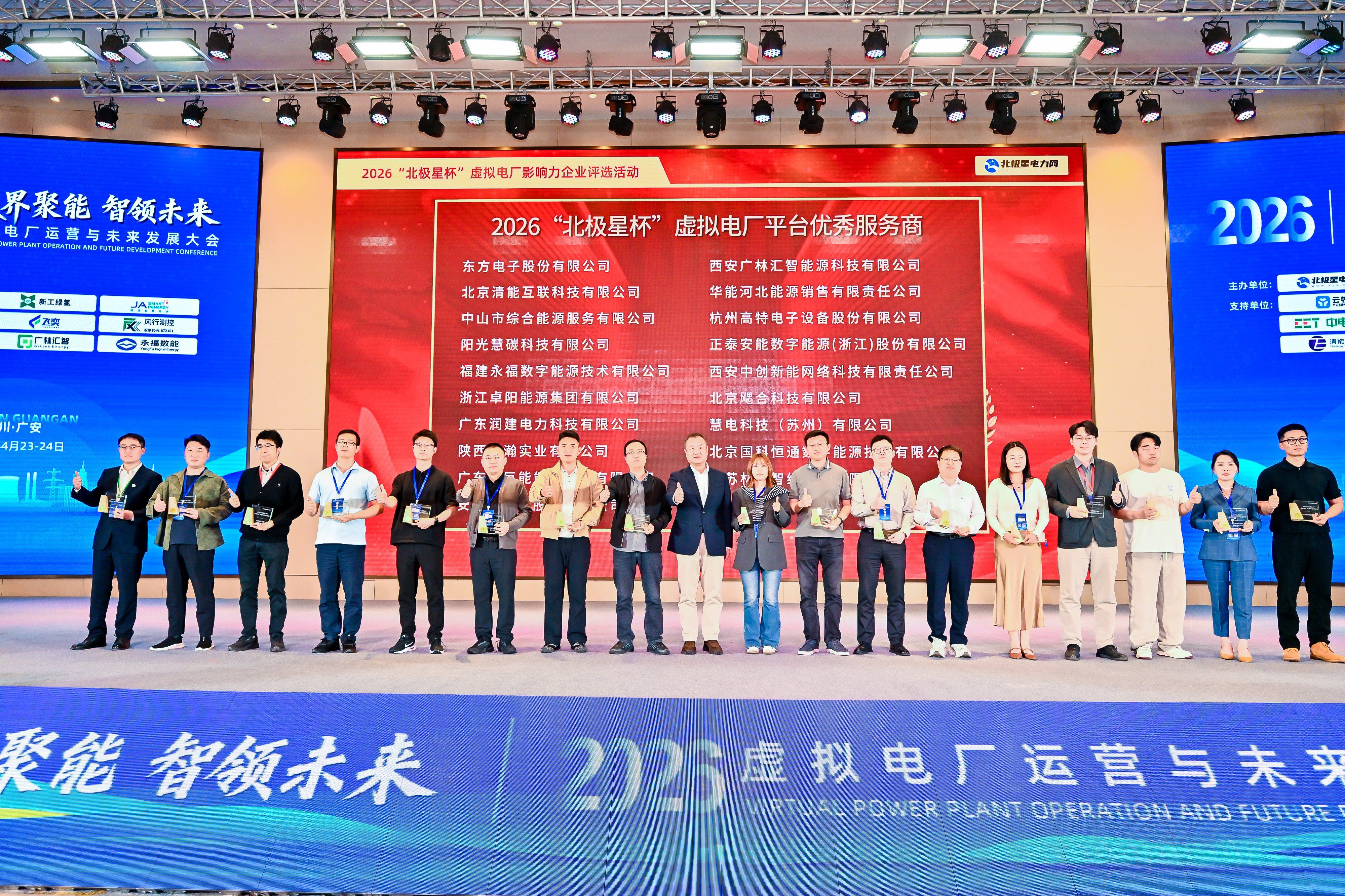4月23日,由北极星电力网举办的2026“北极星杯”虚拟电厂影响力企业颁奖典礼在四川广安成功举行。永福数能凭借在虚拟电厂领域的技术创新实力与稳健的平台运营能力,荣获“虚拟电厂平台优秀服务商奖”。